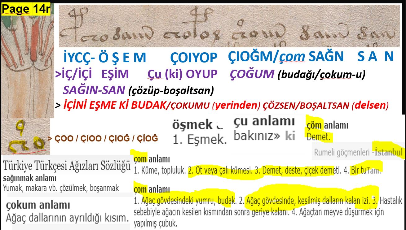 "İÇİÇİ ÖZİM Çu (ki) OYUP ÇOĞUM (knot/bundle/from the branch part of the plant) SAĞIN-SAN (to solve / to empty)".